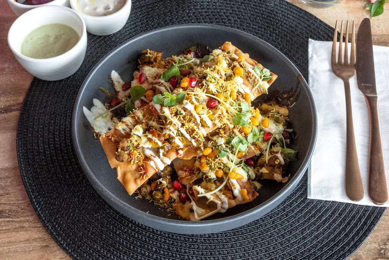 Has few unique food items that you don’t find in an Indian restaurant which is great. All the food items were delicious and came out quick. Aloo Tikki Bao bun was a nice twist and tasted great. Prawn and Scallop curry was unique and cooked to perfection. Enjoyed the gluten-free flat bread. Great friendly service. Nice decor – though the plastic cherry blossoms were out of place 🤣. Highly recommended for food and a special dinner outing.